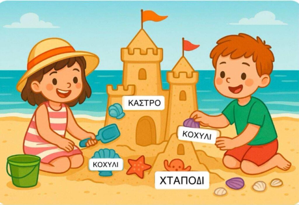 Καλοκαίρι, παιχνίδι και λόγος — μια ιδανική συνθήκη για την ανάπτυξη των γλωσσικών δεξιοτήτων των παιδιών 4–8 ετών! Με απλές, διασκεδαστικές δραστηριότητες στην παραλία, στο πάρκο ή στο σπίτι, μπορούμε να ενισχύσουμε το λεξιλόγιο, την κατανόηση ερωτήσεων, την οργάνωση του προφορικού λόγου και τις πραγματολογικές δεξιότητες (όπως η αναμονή στη σειρά και η αλλαγή ρόλου).